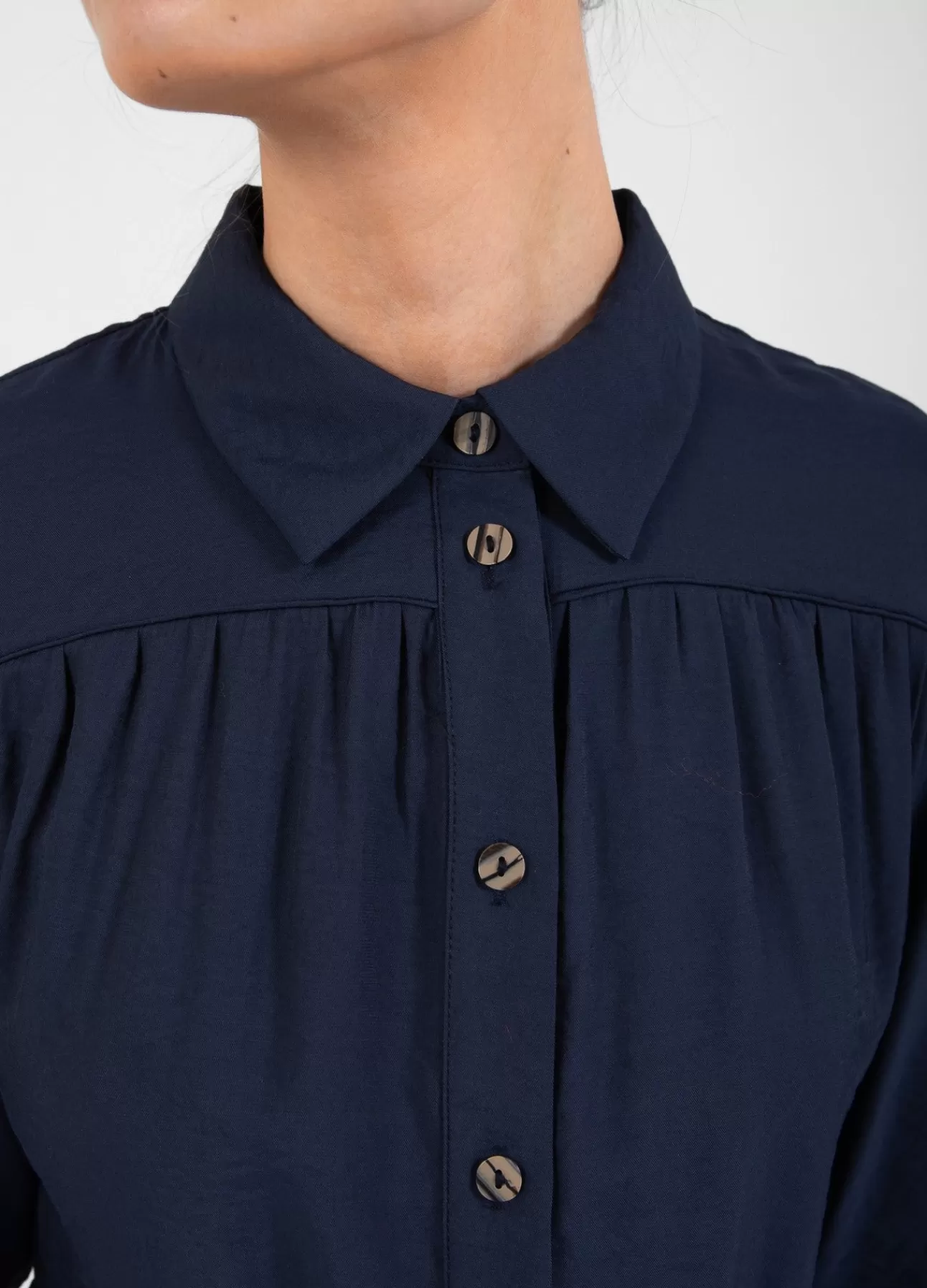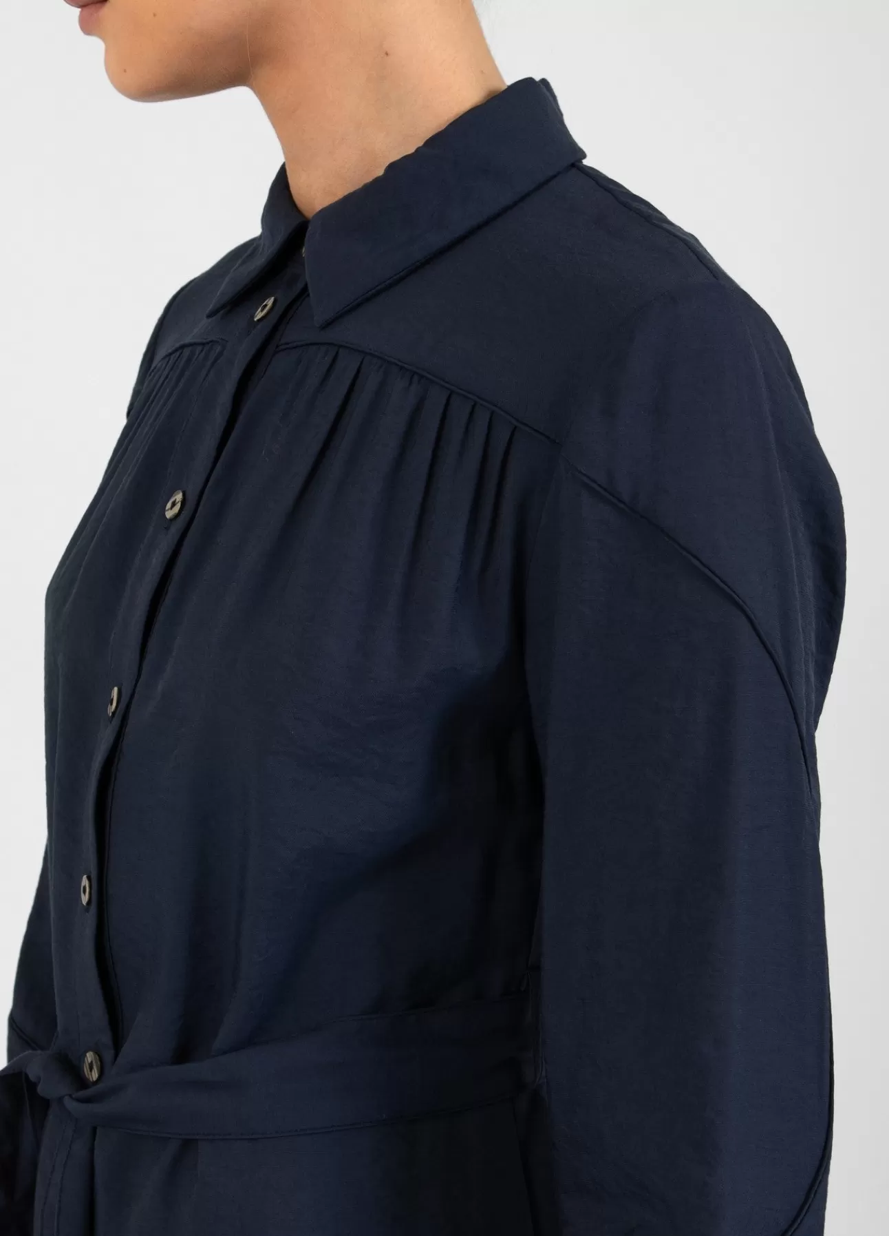 Denna vackra klänning är perfekt för hösten. Knappslån, som går igenom hela klänningen, ger den en exklusiv touch tillsammans med de genomtänkta sömmarna på överkroppen.